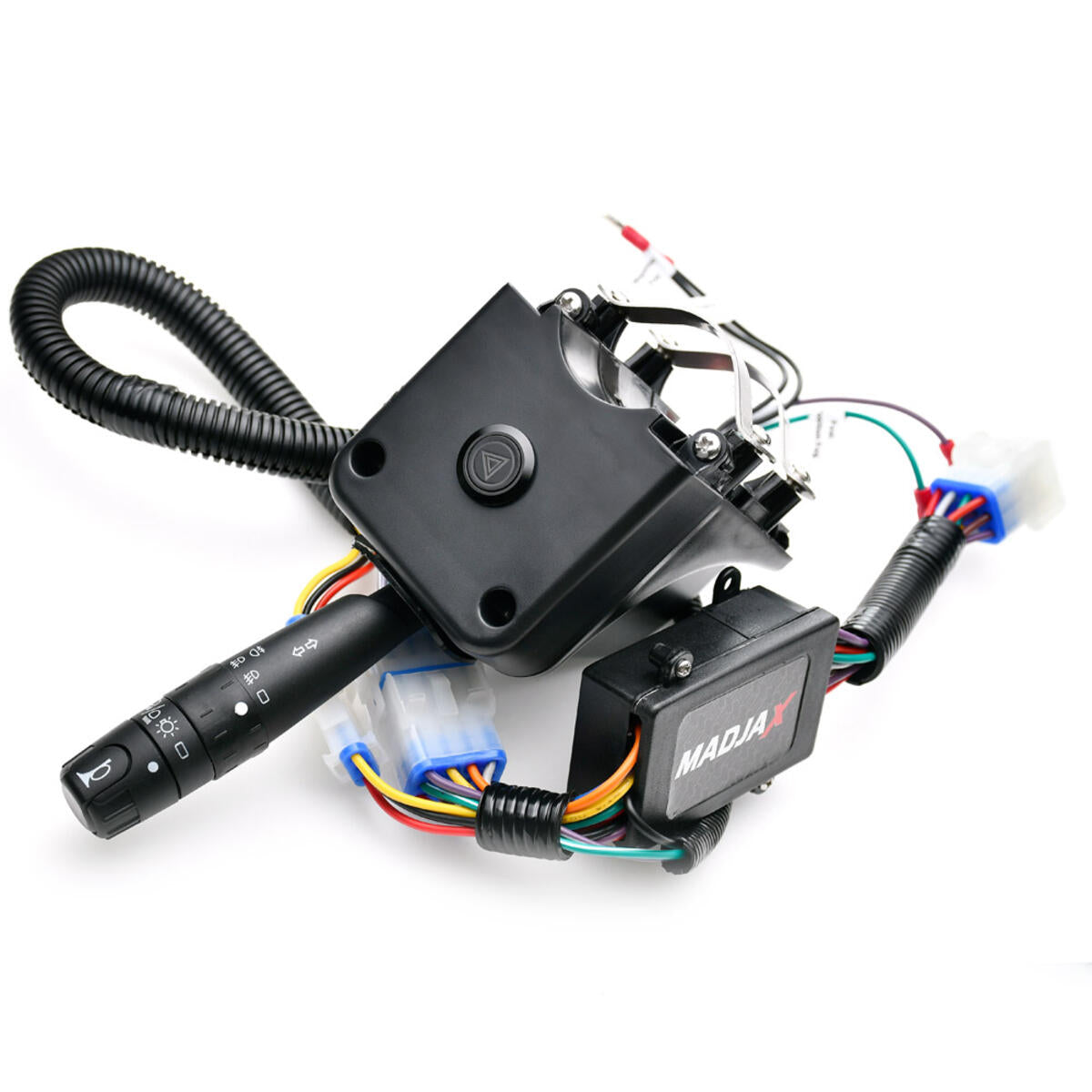 - Turn signal stalk includes switch for high/low beam, two-position accessory lighting switch (for light bars and underbody lights), & horn button